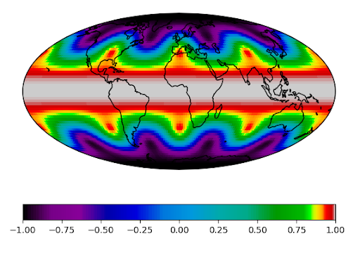 wave = 0.75 * (np.sin(2 * lats) ** 8) * np.cos(4 * lons)