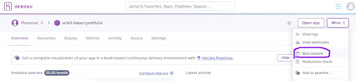 first go to your Heroku dashboard click on your app and than at top right click on More and select the Run Console